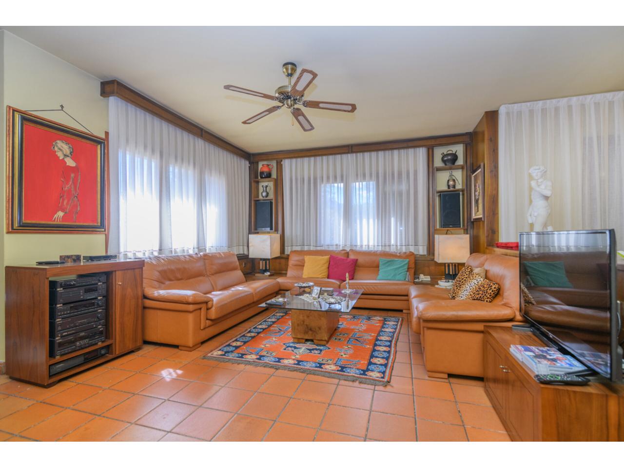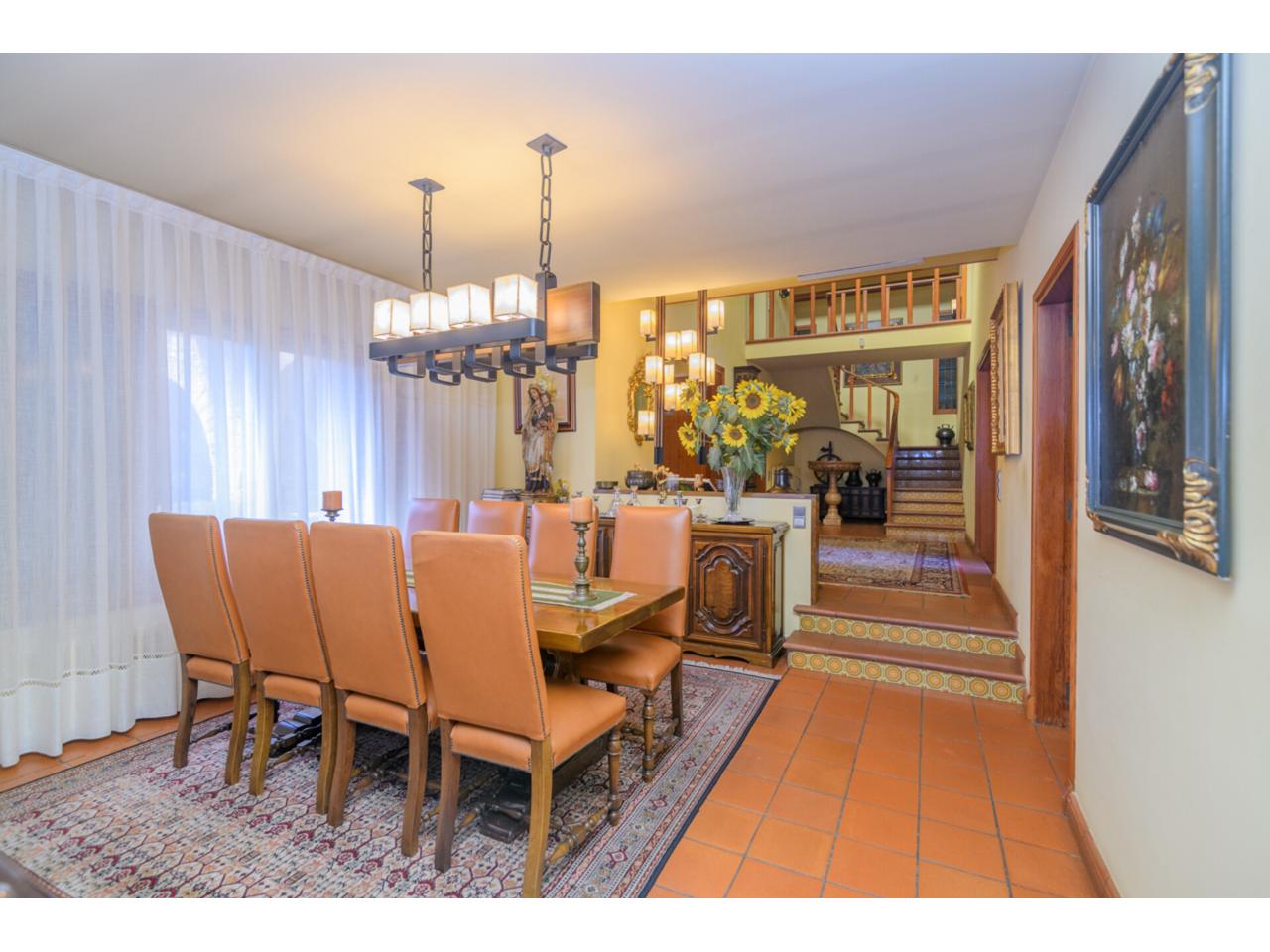A la planta superior s’hi distribueixen quatre habitacions més, incloent-hi dues suites, un despatx ideal per teletreballar i tres banys. Tota la casa compta amb acabats cuidats, calefacció de gasoil, aire condicionat, finestres d’alumini, terres de terratzo i sistema de seguretat.